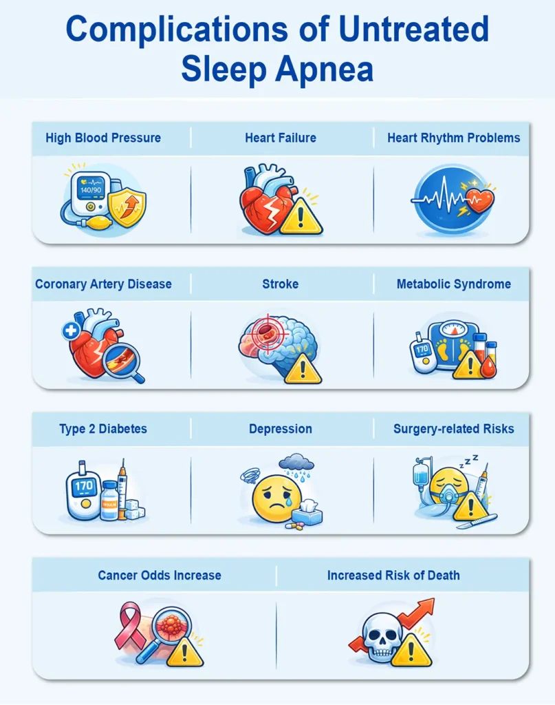 Sleep apnea is not just a sleep problem, it is a whole-body disease that affects multiple organs. If left untreated, the consequences can be life-threatening.