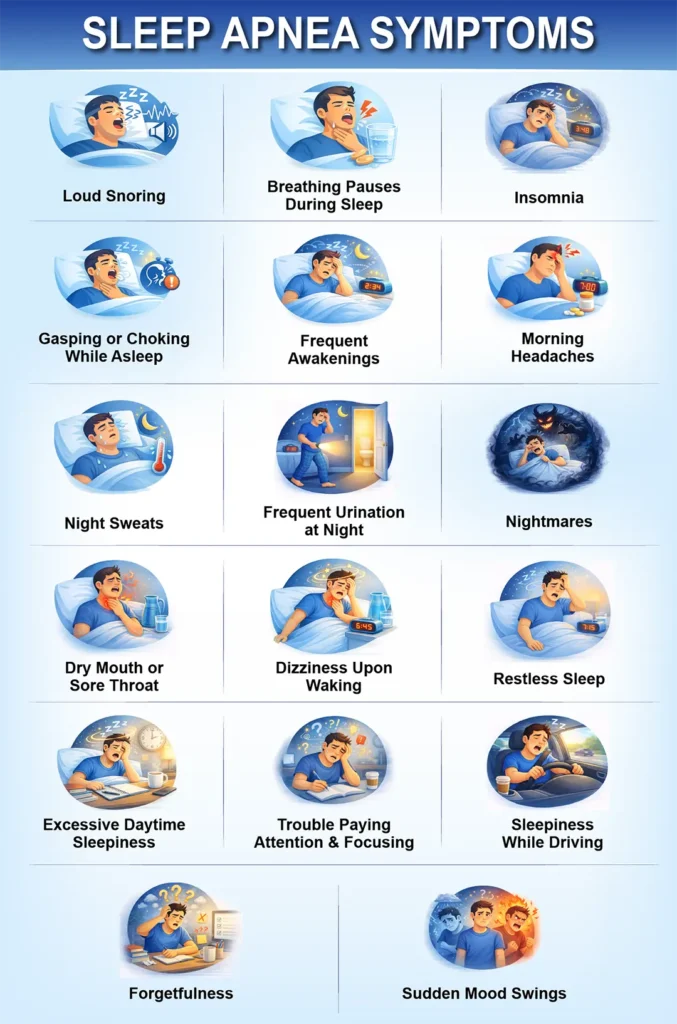 Loud Snoring: This is the most common sign, occurring when air pushes through a narrowed airway. However, not everyone who snores has sleep apnea, and not everyone with sleep apnea snores.